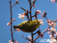 開花が待ち遠しそうなメジロ。かわいいねえ♪