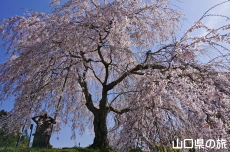 しだれ桜の多い地域で知られる山口市阿東阿東。徳佐八幡宮のすぐ近くにも見応えのある1本のしだれ桜があります。![]()