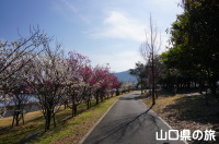 防府市緑化推進委員会の植樹事業によって誕生したスポット「海が見える花の園」。梅や、早咲きで知られる河津桜を始め、陽光桜など様々な品種の桜が植えられています。