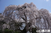| 徳佐八幡宮の枝垂桜 | 山口市徳佐にある徳佐八幡宮。370mもの両参道に 130本咲き誇り、満開時には見事な桜トンネルを造りあげる 西日本隋一の枝垂桜。 |