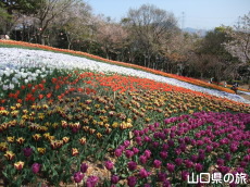 火の山山麓の斜面一面にチューリップとビオラが咲き誇るトルコチューリップ園。開園のきっかけは、下関市とトルコ共和国イスタンブール市の海峡が縁で、1972年5月16日に姉妹都市となり、2007年に35周年を記念してイスタンブール市よりチューリップの球根5万球が下関市に寄贈されたことに始まります。![]()