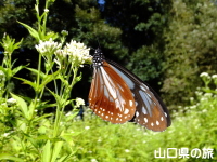リフレッシュパーク豊浦及び豊浦町には毎年、約8,000頭が飛来しているそうだ。「旅する蝶アサギマダラ 川棚温泉街散策MAP」なるパンフも出ているので、