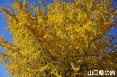 道の駅長門峡から国道9号線を約1kmくらい徳佐方面に進むと左手に大きなイチョウが目に入る。イチョウに向かって脇道があったので立ち寄ってみることに。